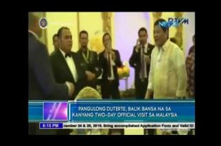 Pangulong Duterte, balik bansa na sa kanyang two-day official visit sa Malaysia