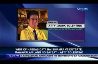 QUEZON City, Philippines – Constitutional lawyer Atty. Mark Tolentino said that the filing of a writ of habeas data by Senator Leila De Lima against President Rodrigo Duterte will be dismissed due to the immunity of the President. Atty. Tolentino said that the camp of Senator De Lima is only looking for media mileage in filing said petition.