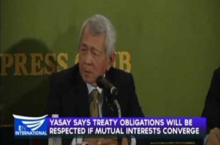 TOKYO, Japan (Eagle News) — Philippines Foreign Affairs Secretary Perfecto Yasay told reporters in Tokyo that his country will respect treaty obligations with the United States as long as mutual interests converge. https://youtu.be/MDqHiaTy-XA