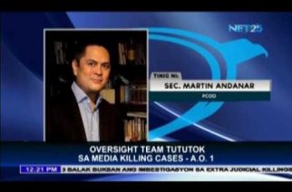 QUEZON CITY, Philippines (Eagle News) — The Presidential Task Force Against Media Killings will form a special oversight team composed of investigators and prosecutors to focus on media killings and to investigate threats against media workers. According to Presidential Communications Secretary Martin Andanar, Administrative Order 1 proves that President Rodrigo Duterte cares about human rights. https://youtu.be/VynhL6No5XM