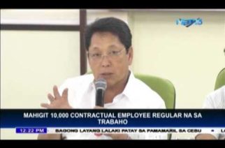QUEZON City, Philippines (Eagle News) — In response to the campaign of the Duterte administration to end contractualization, at least 200 business establishments have already regularized more than 10,000 employees, according to the Department of Labor and Employment. Labor Secretary Silvestre Bello III said this was only 20 percent of the 50 percent target of the department. https://youtu.be/Q7e0sh4GM84