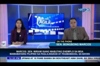 QUEZON City, Philippines – In an exclusive interview with Agila Balita Alas Dose, former Senator Bongbong Marcos shared his memories and remembrances on his running mate in the previous elections, the late Senator Miriam Defensor-Santiago.