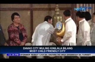 MANILA, Philippines (Eagle News) Davao City on Monday, September 26, once again won the Presidential Award for the most child-friendly city. The Presidential award was granted for the fifth time this year after Davao City won the same award in 1998, 1999, 2013 and 2014. President Rodrigo Duterte personally presented the award to the officials of Department of Social Welfare and Development-Davao in Malacañang.