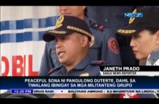 QUEZON City, Philippines (Eagle News) — Ang unang State of the Nation Address (SONA) ni Pangulong Rodrigo R. Duterte ay unang SONA rin sa kasaysayan na walang karahasan. Ayon kay NCRPO Director Chief Superintendent Oscar Albayalde, mapayapa ang SONA at walang bayolenteng insidente sa pagitan ng pulisya at mga raliyista. Sinabi rin ng opsiyal na ikina-lugod ng mga raliyista ang pagpa-pahintulot ng pangulo na gawin ang kanilang programa malapit sa Batasan Pambansa Complex. Bago ang […]
