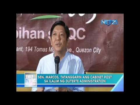 Tiniyak ni Senador Bongbong Marcos ang paglilibing sa kanyang ama sa libigan ng mga bayani, matapos silang magkausap ni President-elect Rodrigo Duterte sa Davao City.
