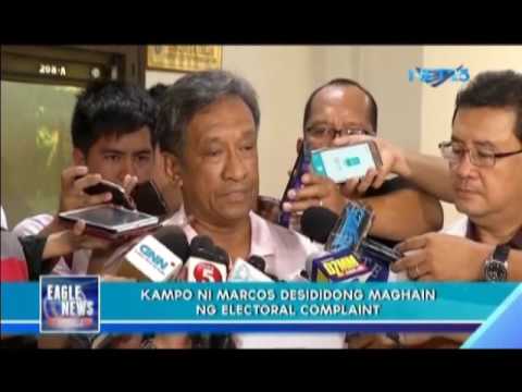 QUEZON City, Philippines – The camp of Senator Bongbong Marcos proposed to incoming President Rodrigo Duterte the formation of an investigating committee to look into the issue of under-vote in the vice-presidential race. The Marcos camp will also file an electoral complaint within 30 days after the proclamation of incoming Vice President Leni Robredo. (Eagle News Service Described by Jay Paul Carlos, Video Editing by Dexter Magno, Uploaded by MRFaith Bonalos)