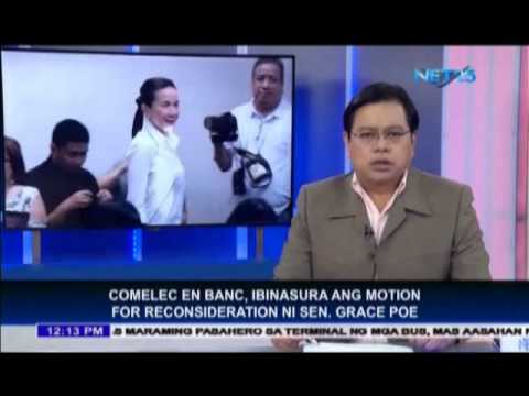 Chairman Andres Bautista of the Commission on Elections confirmed that the COMELEC en banc denied Senator Grace Poe’s motion for reconsideration against the first and second division of the said commission. (Eagle News Service Described by Jay Paul Carlos, Video Editing by Dexter Magno, Uploaded by MRFaith Bonalos) https://youtu.be/xpIVW6kq5Nw