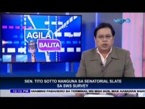 In a latest survey conducted by the Social Weather Station, Senator Vicente Sotto III took the lead as senatorial bet when said group asked respondents to name their top 12 senatoriables. (Eagle News Service Described by Jay Paul Carlos, Video Editing by Dexter Magno, Uploaded by MRFaith Bonalos)