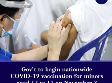 (Eagle News) – The Philippine government will start vaccinating the rest of the country’s minors – aged 12 to 17 – on Wednesday, Nov. 3. Vaccine czar Secretary Carlito Galvez Jr., who is also the National Task Force Against Covid-19 chief implementer, announced this amid the second phase of the vaccination for pediatric A3, or adolescents with comorbidities in Metro Manila. The first phase started on Oct. 15, and the second phase on Oct. […]