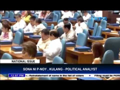 QUEZON City, Philippines, July 28 (Eagle News) – According to political analysts, despite running for two hours, President Noynoy Aquino’s final State of the Nation Address (SONA), it did not touch issues that are vital to the Filipino people like the Mamasapano incident as well as Disbursement Acceleration Program (DAP) and Priority Development Assistance Fund (PDAF). (Eagle News Service Jay Paul Carlos, Jericho Morales, MRFaith Bonalos) https://youtu.be/C_rvCAn3CEg
