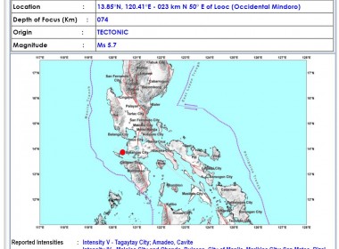 Tremor felt in Metro Manila, several areas in Southern Luzon (Eagle News) – A magnitude 5.7 quake shook Occidental Mindoro at 1:12 a.m. Monday, Sept. 27, which was followed by a 4.5 magnitude aftershock at 1:40 a.m., PHIVOLCS said. The magnitude 5.7 quake was 74 kilometers deep, with the epicenter located at 23 kilometers northeast of Looc, Occidental Mindoro, and was felt in several areas in Metro Manila and other parts of Luzon. The […]