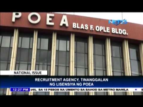 The Philippine Overseas Employment Administration (POEA) revoked the license of a recruitment agency because of various violations.