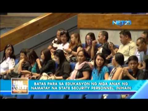 Senator Vicente Sotto III proposed a law giving free education to the children of state security personnel who gave up their life in the line of duty.