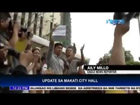 Makati Mayor Jejomar Erwin “Junjun” Binay questions the presence of police in the City Hall despite the issuance of a temporary restraining order of the Court of Appeals.