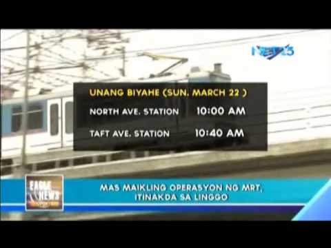 The Metro Railway Transit (MRT) will shorten its operating hours on Sunday (March 22) due to repairs.