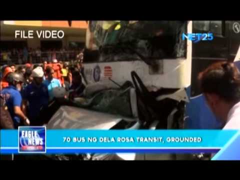 After being involved in an accident, all 70 of the city buses of the De la Rosa Transit were grounded. According to LTFRB, said buses should first undergo road-worthiness tests and respective drivers should also undergo drug tests and safety driving seminars.