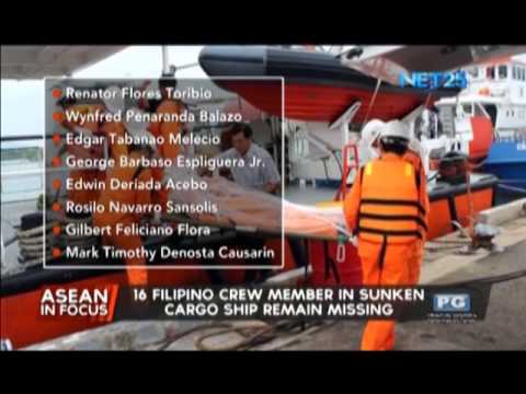 Sixteen Filipino crew of the sunken Vietnamese cargo ship remain missing.