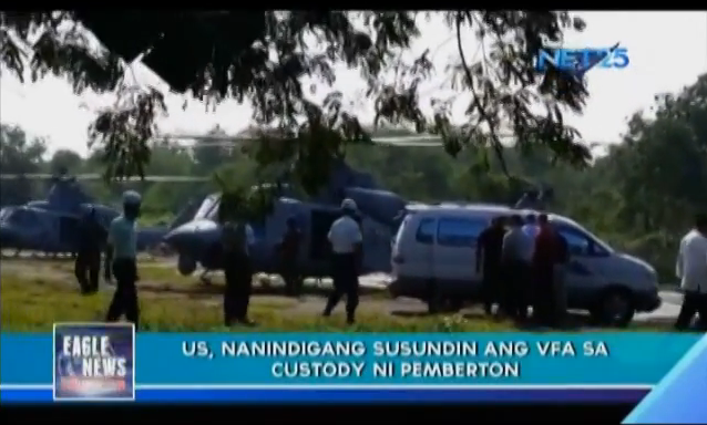 The United States stood by the compliance of the provisions of the Visiting Forces Agreement regarding the custody of US Marine Private First Class Scott Pemberton, who was transferred to Camp Aguinaldo. AFP Chief of Staff, General Pio Catapang said that the US and the Philippines have joint custody over Pemberton.