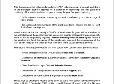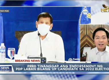 https://www.youtube.com/watch?v=zzm6ux1Kjj8 (Eagle News) — President Rodrigo Duterte has accepted the ruling PDP-Laban’s endorsement to run as the party’s Vice-President in the 2022 elections. Cabinet secretary Karlo Nograles announced this on Tuesday, Aug. 24, in a breaking news aired on NET25. Nograles said that President Duterte already confirmed this to the PDP-Laban execom on Monday, Aug. 23. “Kahapon po dahil sa patuloy naming panawagan kay President Duterte na tanggapin niya ang aming pagsulong at […]