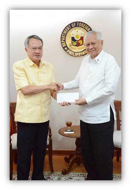 MANILA, Philippines — The government of Thailand recently gave additional cash donation worth more than half a million dollars to the Philippine government for the rehabilitation of areas affected by typhoon Yolanda (international name Haiyan). Thailand Ambassador to the Philippines Prasas Prasasvinitchai presented the check in the amount of US$622,243.39 to Foreign Affairs Secretary Albert F. del Rosario. The simple handover ceremony was held at the Department of Foreign Affairs and attended by Thelsa Biolena, […]