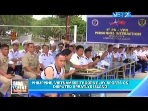 Philippine and Vietnamese troops played soccer and volleyball in a heavily-disputed island in the South China Sea.