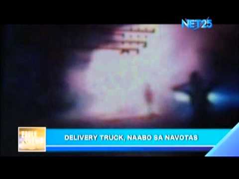 An aluminum delivery truck bursts in flames while sitting in traffic at Road 10, Navotas. The Bureau of Fire Protection has not yet identified the cause of the fire.