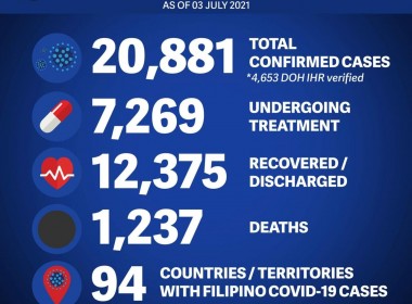 (Eagle News) — Ninety-nine more COVID-19 cases have been reported among overseas Filipinos. According to recent Department of Foreign Affairs data, the additional cases pushed the COVID-19 cases among Filipinos overseas to 20,881. Recoveries are now at 12375, including the additional 88 recoveries. Eight more deaths pushed the COVID-19 deaths among Filipinos abroad to 1237. Meanwhile, the Middle East and Africa are still the regions with the most COVID-19 cases, recoveries, and deaths among Filipinos […]