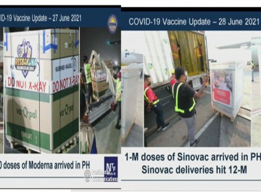 PHL get first shipment of nearly 249,600 Moderna doses; Sinovac deliveries reach total of 12M doses (Eagle News) — The vaccines against COVID-19 that have been delivered to the country this year have reached over 17.45 million doses, with the recent arrival of three million SInovac doses and almost 250,000 doses of Moderna vaccines, Malacanang said. Two million Sinovac doses were delivered on June 24, via a Cebu Pacific flight, while another 1 million […]