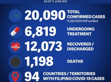 (Eagle News) — Over 100 more COVID-19 cases have been reported among overseas Filipinos. Recent Department of Foreign Affairs data showed the additional 153 cases pushed the COVID-19 total among Filipinos abroad to 20,090. The DFA said the spike in cases was due to a reported spike in the same in the Asia Pacific. Meanwhile, four more have recovered, while two others died, bringing the total recoveries and deaths due to COVID-19 among Filipinos abroad […]