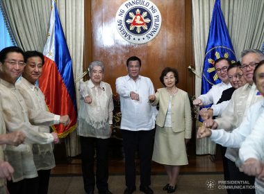 In photo: President Duterte does his signature pose with members of Japan House of Councillors