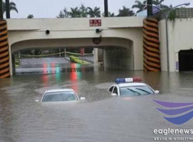 (Eagle News) — These pictures taken by Sarah Ejorcadas show floodwaters engulfing roads as torrential rains pounded Taiwan in recent days. Taiwan experiences around 2,500 millimeters per year of rainfall. Much of the rainfall comes from typhoons.