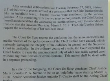 In photos: Supreme Court “Press Statement” stating the facts regarding Sereno’s “indefinite leave”