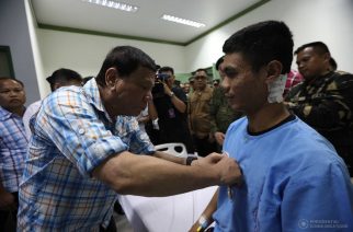 News in photo: President Duterte pins a medal to a soldier wounded in a recent clash with Abu Sayyaf