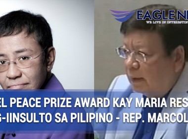 Ipinahayag ni House Deputy Speaker Rodante Marcoleta na “parang iniinsulto ang Pilipino” at hindi dapat ikatuwa ng mamamayang Pilipino ang pagkakapili kay Maria Ressa ng Rappler bilang awardee ng Nobel Peace Prize. Ibinatay ni Marcoleta ang kanyang pahayag sa naging karanasan niya sa mga isinulat ng Rappler. “Ituring mo na akong kasama sa mga hindi sumasang-ayon na binigyan siya ng parangal ng Nobel Peace Prize,” ayon pa kay Marcoleta sa programang “Sa Ganang Mamamayan” ng […]