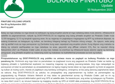 (Eagle News) – The Philippine Institute of Volcanology and Seismology (PHIVOLCS) said a “phreatic eruption” or steam-driven explosion occured in Mt. Pinatubo’s crater on Tuesday, Nov. 30. In its 6 p.m. update on Tuesday, PHIVOLCS said that evidence of the phreatic eruption was the visual observation of an “eruption plume” as well as data from “seismic, infrasound and satellite monitoring.” It said that the phreatic eruption occured in between 12:09 and 12:13 p.m. on Tuesday. This […]