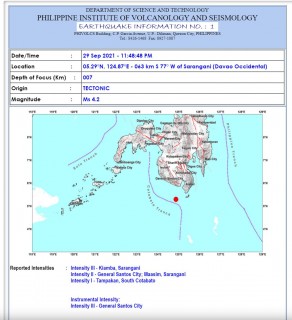 (Eagle News) – A magnitude 4.2 quake struck 63 kilometers west of Sarangani, Davao Occidental, just before midnight, at…