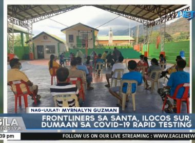 Ni Myrnalyn Guzman Eagle News Service (Eagle News) – Walang positibo sa ginawang rapid testing ng Rural Health Unit sa 26 na barangay sa bayan ng Santa, sa probinsya ng Ilocos Sur na isinagawa sa 974 frontliners. Pinangunahan ito ni Mayor Jesus Bueno Jr. at Vice Mayor Jeremy Jesus Bueno III. Ayon kay Dr. Marilou Cardenas, ang Municipal Health Officer sa nasabing bayan , dumaan muna ang mga frontliners sa counseling at pumirma sila […]