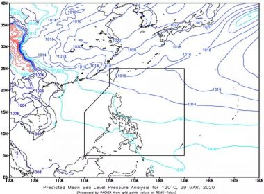 (Eagle News)–Cloudy skies with isolated rains are expected in parts of Northern Luzon. The Philippine Atmospheric Geophysical and Astronomical Services Administration said partly cloudy to cloudy skies with isolated light rains will be experienced in Batanes and Babuyan Group of Islands due to the Northeasterly Surface Windflow affecting the eastern section of the country and extreme Northern Luzon. PAGASA said partly cloudy to cloudy skies with isolated rainshowers are expected over the provinces of Aurora, […]