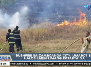 ZAMBOANGA CITY, Philippines (Eagle News) – The raging bushfire in the eastern part of Zamboanga City has now affected almost 15 hectares, particularly in barangay Muti. The bushfire started Monday noon, Feb. 17, and continues to spread to dry grasslands because of the strong winds, according to the barangay captain of Bgy. Muti, Henry Aring. He said that three families own the grasslands razed by the fire in the barangay. Because of the bushfire, travel […]