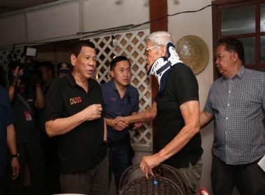 (Eagle News)—President Rodrigo Duterte visited on Tuesday night the wake of the wife of former Cagayan de Oro mayor Reuben Canoy. Canoy, a member of the Consultative Commission that drafted the proposed federal charter, was seen speaking to the President in this picture released by former Special Assistant to the President Bong Go. Solona Canoy passed away on Feb. 3.
