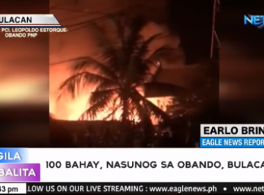 Ni Earlo Bringas Eagle News Service (Eagle News) — Tinupok ng apoy ang mahigit sa isandaang bahay sa Barangay Paliwas Obando, Bulacan. Nagsimula ang sunog mag aalas-diyes kagabi at kaagad itong inakyat sa ikatlong alarma. Mabilis na kumalat ang apoy sa lugar dahil karamihan sa mga bahay ay gawa lamang sa light materials. Aabot sa isangdaan at dalawampu’t pitong (127) pamilya ang nawalan ng bahay dahil sa sunog. Ayon sa Bureau of Fire Protection (BFP), […]