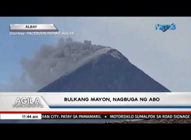 (Eagle News) — Nagbuga ng abo ang Bulkang Mayon kaninang umaga. Ayon kay Ed Lagueta, resident volcanologist ng Philippine Institute of Volcanology and Seismology sa Albay, naitala ang bahagyang pagbubuga ng abo sa bulkan, alas 8:40 ng umaga kanina. Sa ngayon ayon kay Laguerta ay wala pa naman silang nakikitang banta ng major volcanic activity sa Mayon. Ipinaliwanag nito na ang pagbuga ng abo ay pag-init ng tubig sa ilalim ng crater ng bulkan. Patuloy […]
