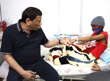 (Eagle News)—-In these pictures released by Malacañang, President Rodrigo Duterte is seen interacting with children afflicted with cancer at the Southern Philippines Medical Center Cancer Institute Children’s Unit in Davao. The visit took place on Sunday, Dec. 23.