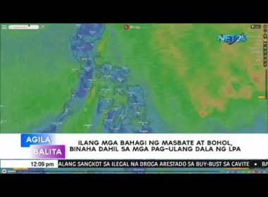 (Eagle News) — Lubog sa baha ang ilang lugar sa mga lalawigan ng Masbate at Bohol dahil sa walang-tigil na pag-ulan na dala ng isang low pressure area (LPA). May bantang peligro naman ang dala ng mga pag-ulan dahil sa LPA dahil sa lakas ng agos ng tubig-baha sa Dimasalang, Masbate. Nabatid na pinasok ng tubig ang Municipal Agriculture Office at lubog sa baha ang Barangay Canomay, Poblacion, Gaid at G. Aliño. Samantala, lubog din […]