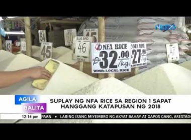 (Eagle News) — Umaasa ang National Food Authority (NFA) Region 1 na sasapat hanggang sa katapusan ng 2018 ang stock nila ng bigas. Ayon kay Director Jaime Hadlocon, nasa 19 na libong sako pa ng bigas ang nakaimbak sa mga warehouses ng Ilocos Region. Pero ayon sa opisyal, hindi naman gaanong nangangailangan ng NFA rice ang Region 1 dahil halos bawat pamilya sa mga lalawigan doon ay may kanya-kanya nang sapat na imbak ng bigas. […]
