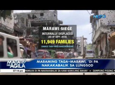(Eagle News) — Isang taon na ang lumipas mula nang ideklara ni Pangulong Rodrigo Duterte na malaya na ang Marawi City sa teroristang Maute-ISIS na lumusob sa lungsod. Pero libu-libong pamilya pa rin na apektado ng limang buwang bakbakan ang hindi pa nakakabalik sa kani-kanilang mga tahanan. Noong Nobyembre 2017, 77,170 na pamilya ang naitalang nawalan ng tahanan dahil sa bakbakan. At batay sa datos mula sa Task Force Bangon Marawi mula nitong Septyembre 2018, […]