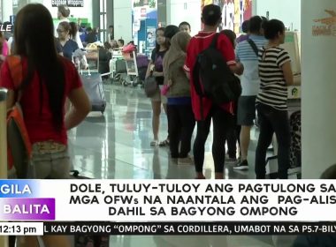 (Eagle News) — Tuluy-tuloy ang pagtulong na ginagawa ng Department of Labor and Employment (DOLE) sa mga Overseas Filpino Worker (OFWs) na naapektuhan ng bagyong Ompong. Ayon kay Secretary Silvestre Bello III, medyo naantala lamang ang pagbibigay ng tulong sa Isabela province dahil sa panghihimasok ng ilan na nais manggulo sa pagbibigay ng assistance. Pero nilinaw ng kalihim na itinuloy na muli ang pagbibigay ng tulong sa OFWs sa Region 1, 2, 3 at Quezon […]