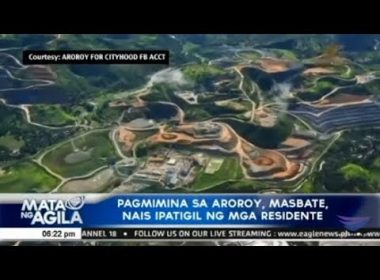 (Eagle News) — Nais ipatigil ng mga residente ng Aroroy, Masbate ang isang malaking minahan na kanilang inirereklamo dahil sa hindi magandang pamamalakad nito at halos nasa 50-100 meters na ang lapit nito sa mga komunidad. Kaya ilang mga residente na ang nakakaranas ng gutom, iba’t-ibang sakit at kawalan ng suplay ng tubig dahil kontaminado na ito ng mga kemikal. Una rito, inihayag ni Department of Environment and Natural Resources Sec. Roy Cimatu ang pagnanais […]