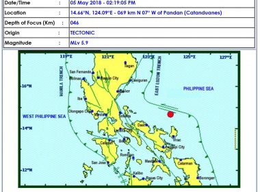 (Eagle News) – A 5.9 magnitude quake hit Catanduanes at 2:19 pm on May 5, Saturday, with a depth of 46 kilometers. This came four hours after a magnitude 4.6 quake hit the province, 19 kilometers south east of Baras. Both quakes were of tectonic origin. According to the Philippine Institute of Volcanology and Seismology (PHIVOLCS) advisory, it is expecting aftershocks after the latest quake that hit Catanduanes Saturday afternoon. The quake was […]