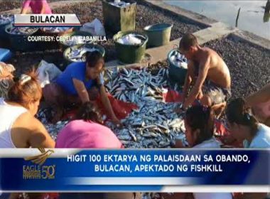 (Eagle News) — Apektado ngayon ng fish kill ang mahigit sa isandaang ektarya ng palaisdaan sa Obando, Bulacan. Ayon kay Wilfredo Perez, direktor ng Bureau of Fisheries and Aquatic Resources-Central Luzon, mahigit dalawandaang metriko tonelada ng mga bangus, tilapia, at iba pang uring isda ang namatay. Nagsimulang umanong mapansin ng mga fish pen operator ang pagkamatay ng mga isda noong Sabado. Paliwanag ng BFAR, sobrang init at pagbaba ng dissolved oxygen ang dahilan ng fish […]